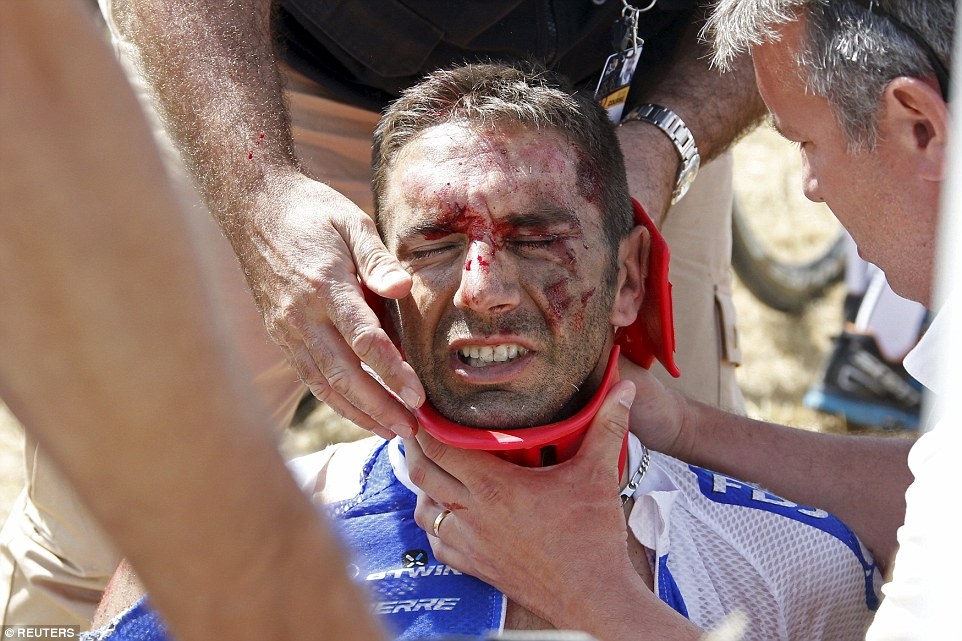 Tay đua người Pháp, William Bonnet cùng 5 cua-rơ khác gặp tai nạn ở chặng thứ ba Tour de France hồi tháng 7. Bonnet buộc phải bỏ cuộc vì gãy đốt sống cổ. (Xem chi tiết)