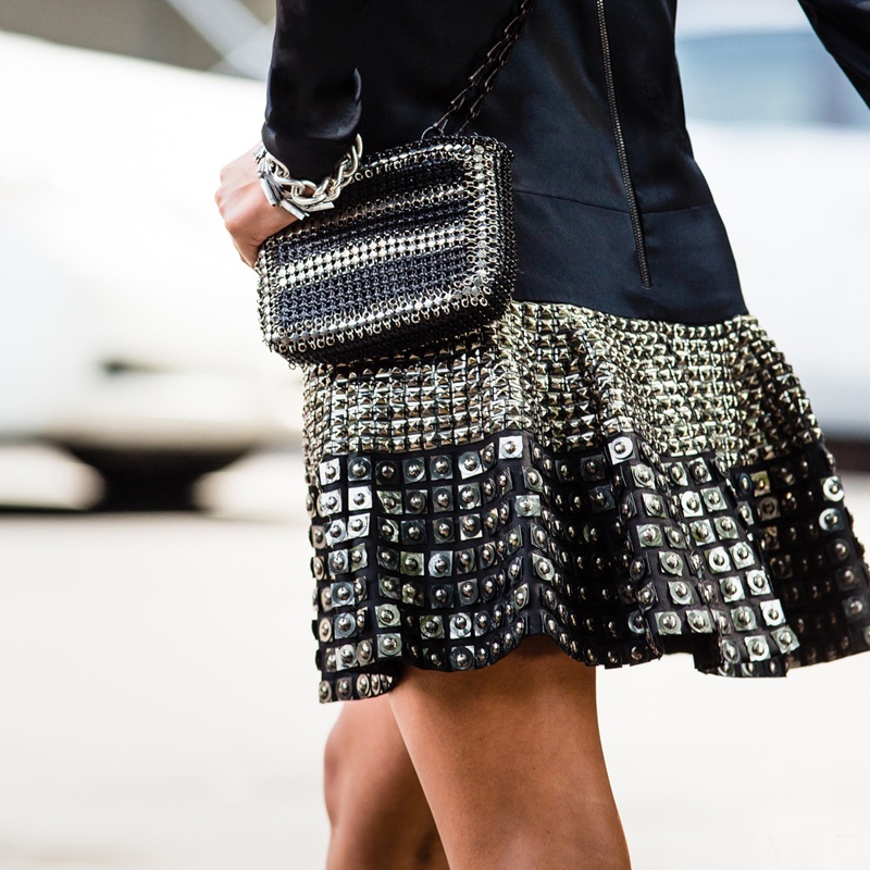 | Mẫu túi mini của Paco Rabanne nổi lên nhờ vẻ đẹp cá tính và cách kết hạt tinh xảo. Với mẫu túi bọc ngoài bằng các hạt kim loại, các tín đồ thời trang dễ dàng chọn lực trang phục cá tính đi kèm. Kiểu dáng khá đơn giản nhưng góp phần quan trọng trong việc tạo điểm nhấn và phong cách cho người mặc. Mẫu túi có giá 2.100 USD. |
