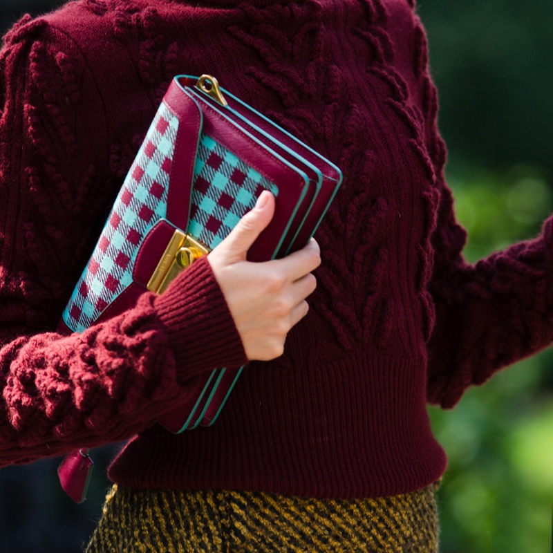Thương hiệu Prada mang đến tuần lễ Milan Fashion Week 2014 mẫu túi mới có họa tiết ô vuông gam màu cổ điển, và chất liệu len da kết hợp phù hợp với không gian mùa thu đông, dáng túi dễ dàng đi cùng trang phục đời thường hoặc công sở. Mẫu túi có giá 1.650 USD.