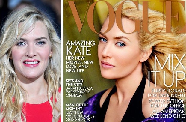 Công cụ làm mờ đã giúp làn da và các nếp nhăn của Kate biến mất hoàn toàn trên tạp chí Vogue, thậm chí màu mắt của cô cũng thay đổi, điều này khiến Kate biến thành một sản phẩm tượng sáp hơn là hình ảnh chân thật trên trang báo.