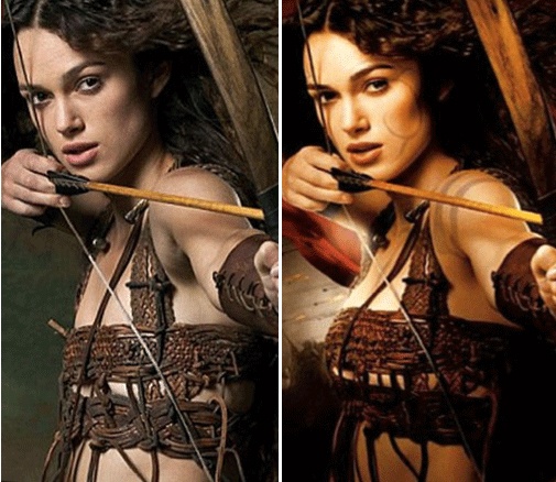 Trong tấm poster quảng cáo cho bộ phim King Arthur, Keira đã được tăng size vòng 1 lên gấp 3. Việc chỉnh sửa quá vô lý thậm chí còn khiến Keira cảm thấy bực mình.