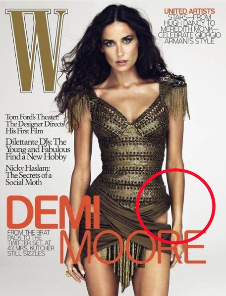 Trước đó, trên tờ W, Demi Moore cũng bị mất một phần vòng hông do chỉnh sửa. Sau đó, phát ngôn viên của tờ W đã nguy biện rằng: Do Demi là một phụ nữ khác thường nên chúng tôi muốn phản ánh điều đó trên trang bìa.