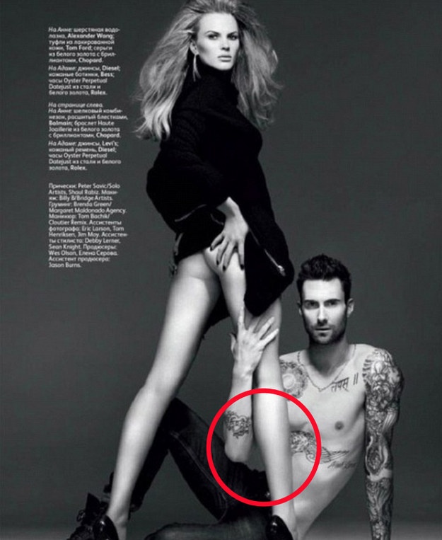 Trên tạp chí Vogue, Adam Levine đã bị mất một phần thân hình phía sau cặp chân dài của cô người mẫu.