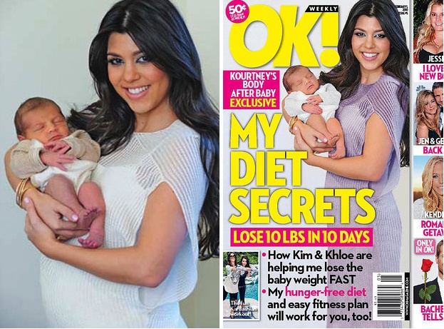 Bức ảnh chụp Kourtney Kardashian trên tạp chí OK được thực hiện chỉ 7 ngày sau khi cô vừa sinh con. Họ thậm chí đã thay đổi cả màu sắc trang phục nhằm gây ấn tượng hơn. Ngoài ra, điều khiến Kourtney Kardashian nổi điên chính là việc các tay thợ ảnh đã bóp gọn bụng cô một cách quá đà khiến ai cũng có thể nhận ra sự vô lý đó.