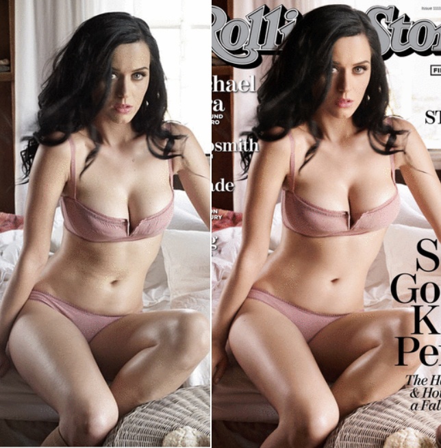 Trên trang bìa Rolling Stone, Katy đã được chỉnh sửa bằng cách làm gọn bụng, tăng size ngực và làm gọn đôi chân.