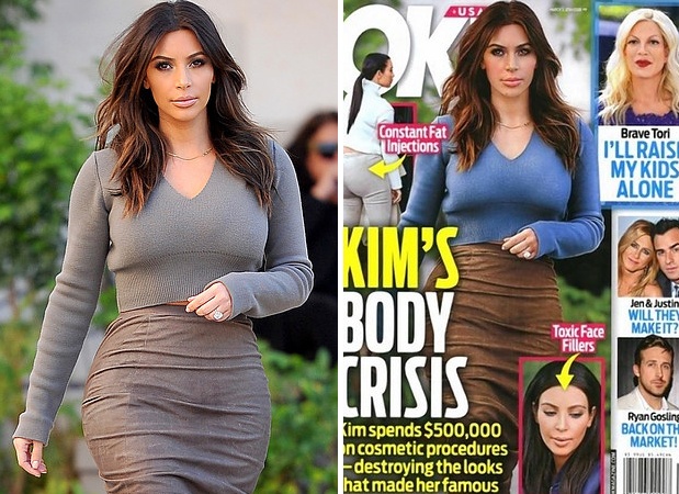 Trước đó, Kim cũng gặp sự cố với tạp chí OK khi họ đăng hình cô rất thon gọn và chỉnh sửa cả màu sắc quần áo. Kim sau đó đã bực bội kêu lên: "Làm ơn đừng thay đổi quần áo của tôi, nếu họ có thể làm được như vậy thì không biết họ còn sẵn sàng làm những gì nữa".