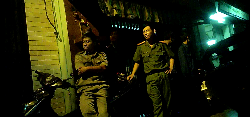 21h cùng ngày, tại TP HCM xuất hiện một cơn mưa rất to nhưng các chiến sĩ cảnh sát vẫn chốt chặn nghiêm ngặt các ngả đường để thực hiện công tác khám xét.