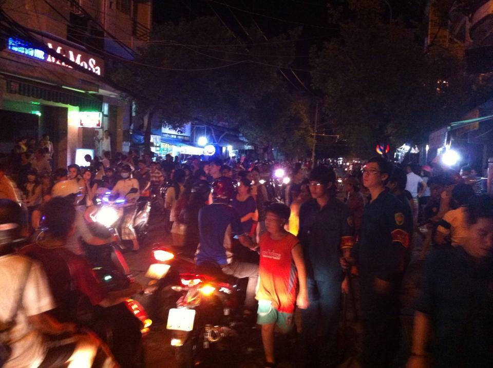 | Người dân tập trung rất đông tại hiện trường dù trời đã khuya. Ảnh: Hải An |