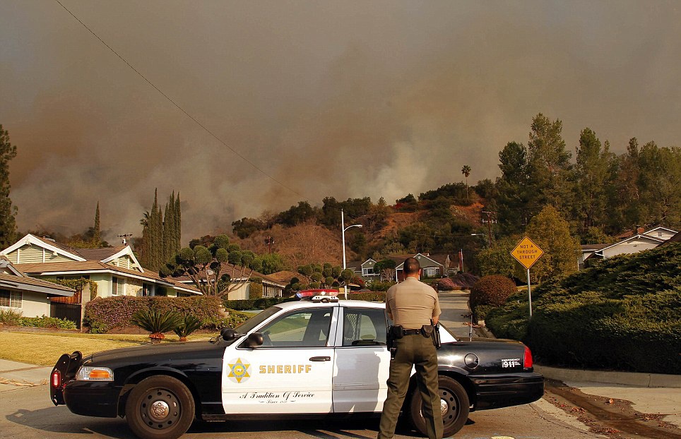 | Một đoạn đường ở gần a Glendora ngừng lưu thông vì đám cháy tới gần. Ảnh: AP. |