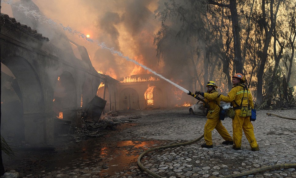 | Lực lượng cứu hỏa đang nỗ lực chữa cháy. Vụ hỏa hoạn xảy ra vào 6h sáng 16/1 (giờ địa phương) tại rừng quốc gia Angeles ở dãy núi San Gabriel, hạt Los Angeles, bang California, Mỹ. Ảnh: AP. |