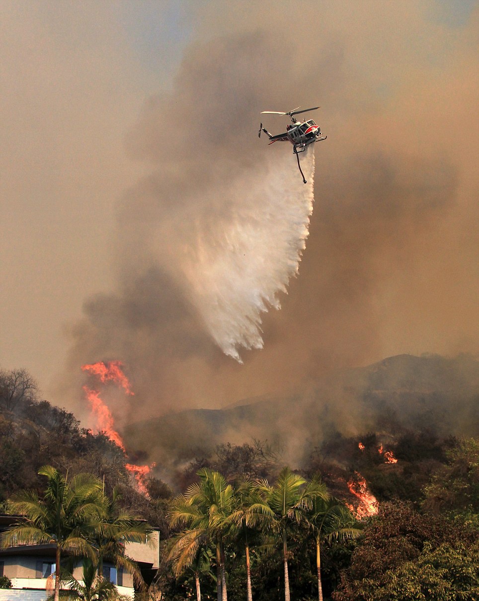| Trực thăng thả hóa chất để dập lửa. Ảnh: AP. |