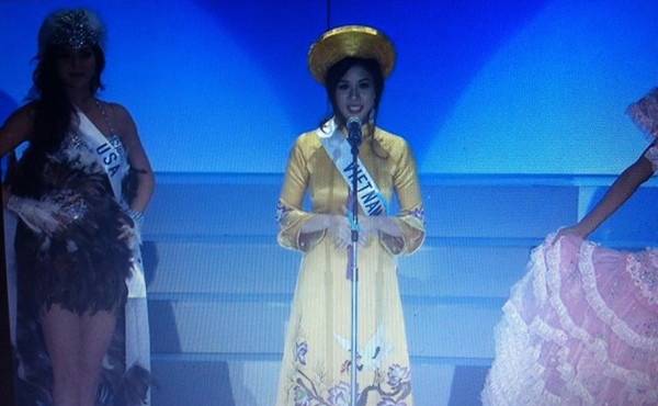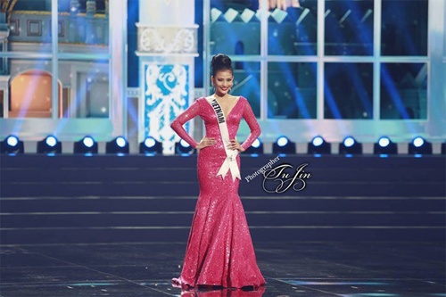 | Gu ăn mặc màu mè của Trương Thị May tại Hoa hậu Hoàn Vũ. |