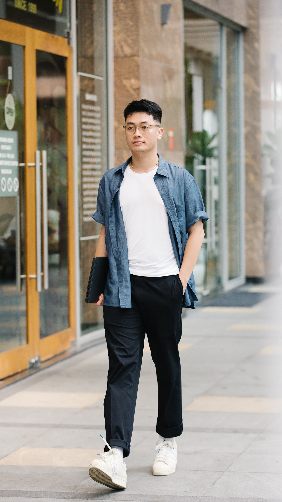 | Thông thường, tôi mặc áo thun bên trong, phối cùng sơ mi bên ngoài và kết hợp cùng quần tây, giày thể thao trẻ trung. Tuy nhiên, TP.HCM những ngày này khá oi bức, tôi quyết định thay thế áo thun bên trong bằng chiếc áo lót theo công nghệ AIRism của Uniqlo, vừa đảm bảo tính thời trang, vừa giúp tôi tự tin hơn khi di chuyển dưới thời tiết trên dưới 40 độ C. |