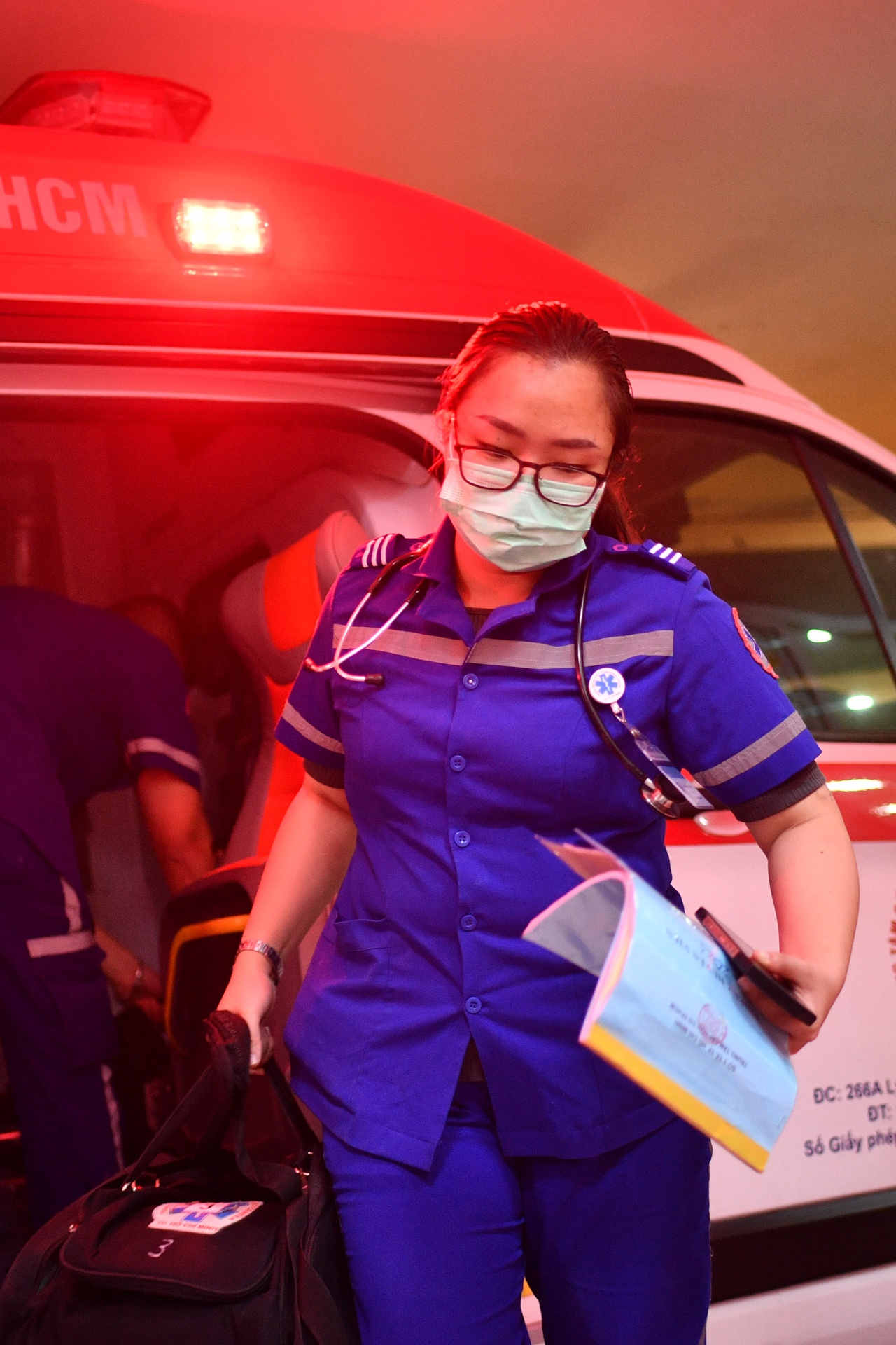 | Ca cấp cứu kết thúc khi chúng tôi đưa được người phụ nữ này đến Bệnh viện Nhân Dân 115. Sau khi bàn giao bệnh nhân cho đồng nghiệp, chúng tôi chào người nhà và ra về. |