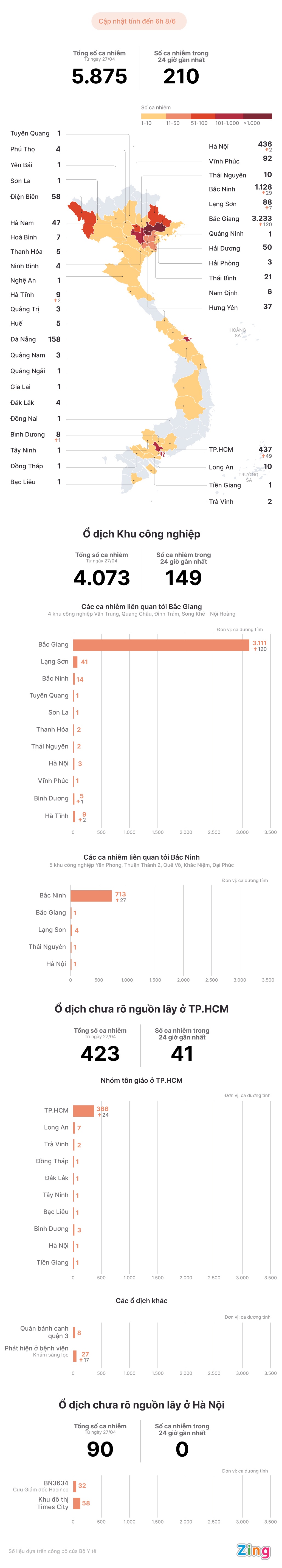 Từ 27/4 đến nay, Việt Nam phát hiện tổng cộng 5.875 ca Covid-19. Đặc biệt, TP.HCM ghi nhận nhiều bệnh nhân qua khám sàng lọc tại các cơ sở y tế.