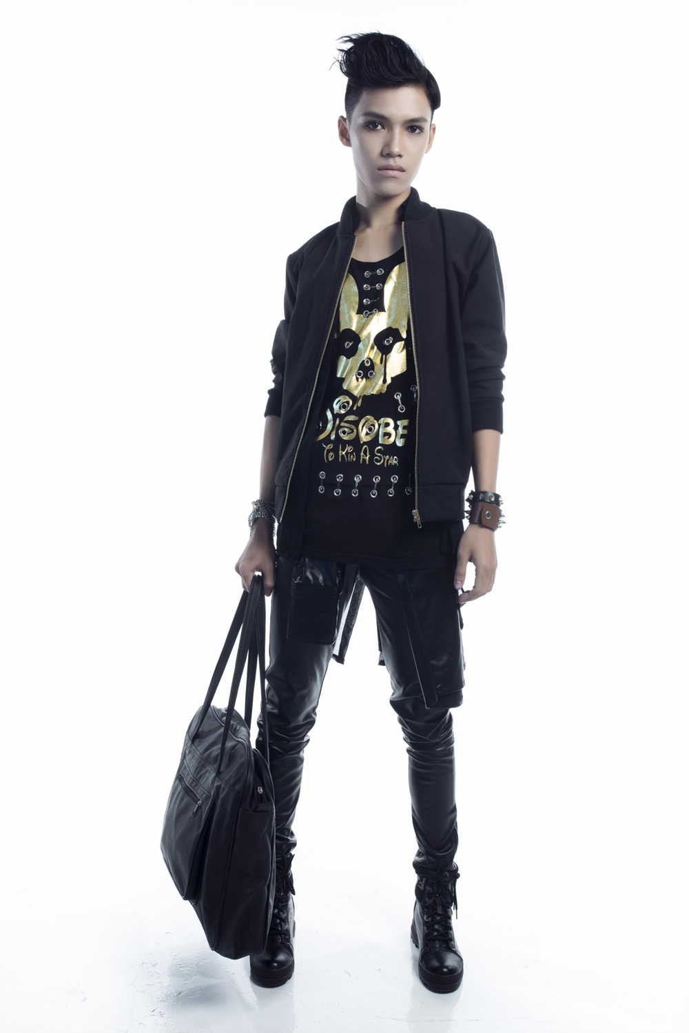 Trong nhóm các thí sinh nam, Trần Quốc Tuấn (sinh năm 1988) vượt trội về ngoại hình cao ráo và phong cách mạnh mẽ. Tận dụng ưu điểm hình thể, chàng trai này chọn phong cách Rock-chic. Trang phục tối màu, chất liệu da jeans hầm hố tôn nét khỏe khoắn của thí sinh. Anh không quên trang điểm viền mắt đen, là phong cách đặc trưng của những rocker thập niên 70. Vào đây để bình chọn cho thí sinh.