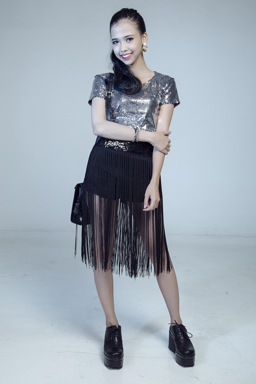 | Cô gái đến từ Lâm Đồng - Nguyễn Hoàng Nhật Uyên thể hiện bản thân với phong cách thời trang ánh kim cá tính. Dù không sở hữu chiều cao lý tưởng, vóc dáng cân đối, nữ thí sinh vẫn mạnh dạn khoe vòng 2. Gam màu tối cũng tôn làn da trắng hồng ưa nhìn. Vào đây để bình chọn cho thí sinh. |