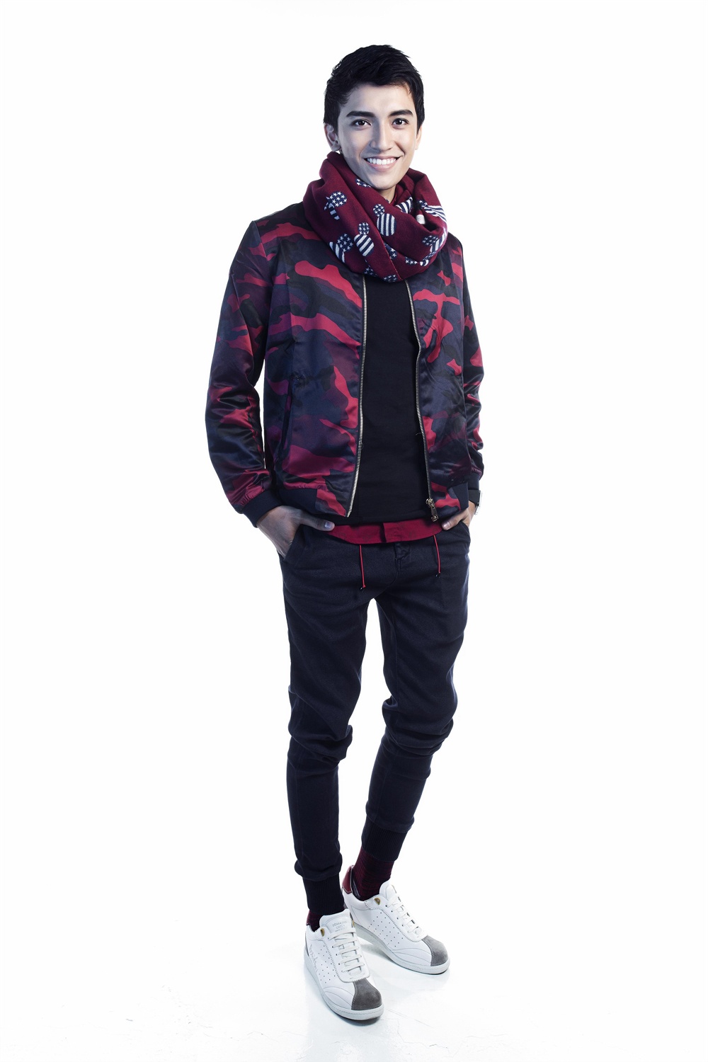 Nhóm Print on Print: Khác với nhóm Denim bao gồm những chàng trai cá tính, nhóm Print on Print có sự góp mặt của cả nam và nữ. Trong ảnh là nam thí sinh đến từ TP.HCM - Nguyễn Hồng Đức (sinh năm 1994) chọn cách phối khá an toàn với áo khoác họa tiết trầm, set trang phục gam trầm thể hiện vẻ nam tính. Chàng trai này có lợi thế nụ cười hiền lành. Song trang phục và cách tạo dáng của anh chưa thật sự sinh động. Vào đây để bình chọn cho thí sinh.