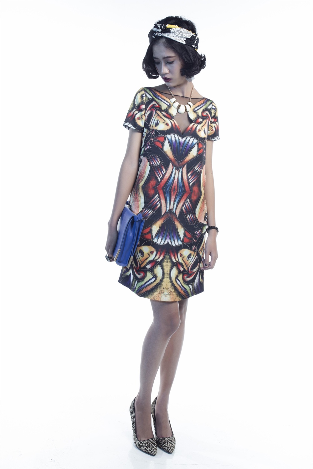 | Trong nhóm Print on Print, Hoàng Trà My (sinh năm 1996) là cô gái duy nhất chọn phong cách nữ tính, thanh lịch. Váy suông rộng được in họa tiết nhiều màu sắc trừa tượng, một trong những xu hướng được lăng xê từ Elle Fashion Show vừa diễn ra. Trà My cho thấy sự tinh tường mốt với cách mix phụ kiện hợp trào lưu như khăn turban, túi gam xanh và giày da rắn... Vào đây để bình chọn cho thí sinh. |