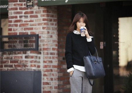 Đây là cách phối cơ bản nhất với áo len, nhất là trong những ngày gió lạnh về. Tất cả những gì bạn cần chỉ là một chiếc sơ mi cổ Đức và một chiếc áo len cổ tròn hoặc cổ V. Sau đó, bạn có thể thoải mái phối cùng short vải, chân váy ngắn/dài tùy ý hay quần trouser, quần jeans. Sự kết hợp đậm đặc phong cách preppy này rất hợp với những cô nàng công sở, bởi chung không chỉ rất đẹp, nữ tính mà lại còn rất "đứng đắn".