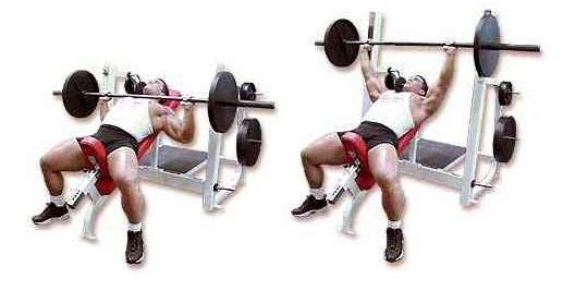 Nằm đẩy ngực với tạ đòn. Đẩy lên thẳng tay và hạ xuống chạm nhẹ vào ngực. Tập 10 đến 12 lần cho mỗi hiệp. Tập từ 3-4 hiệp.