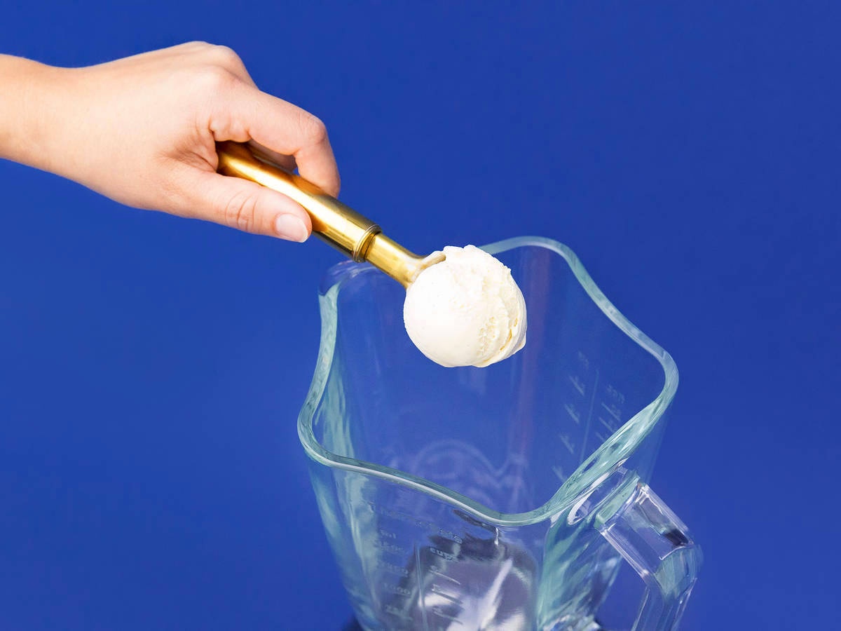 - Đổ sữa và kem vani vào máy xay sinh tố, xay đều.