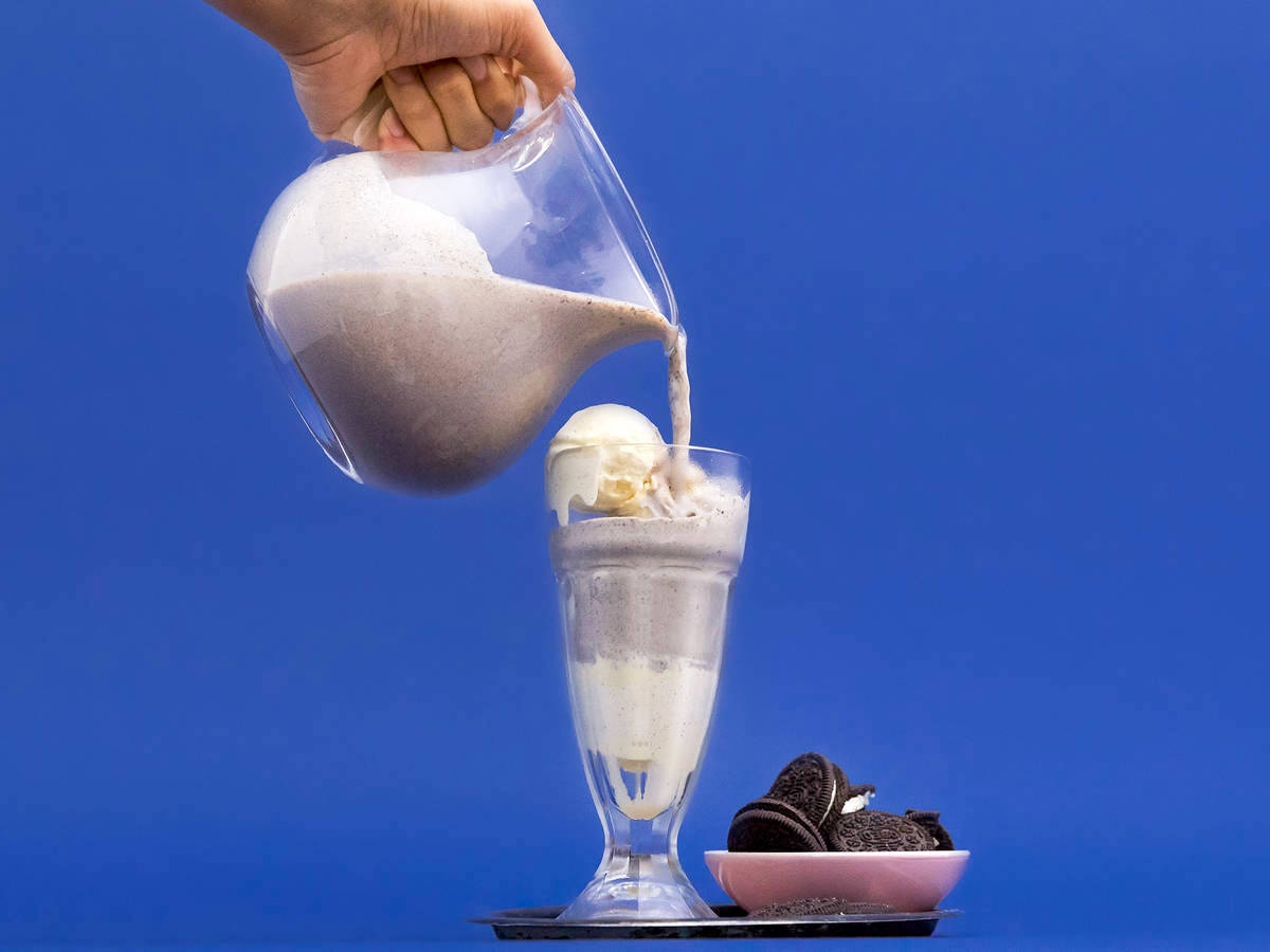 - Đổ hỗn hợp đã xay vào ly, trang trí thêm muỗng kem và một chiếc bánh quy rồi thưởng thức.