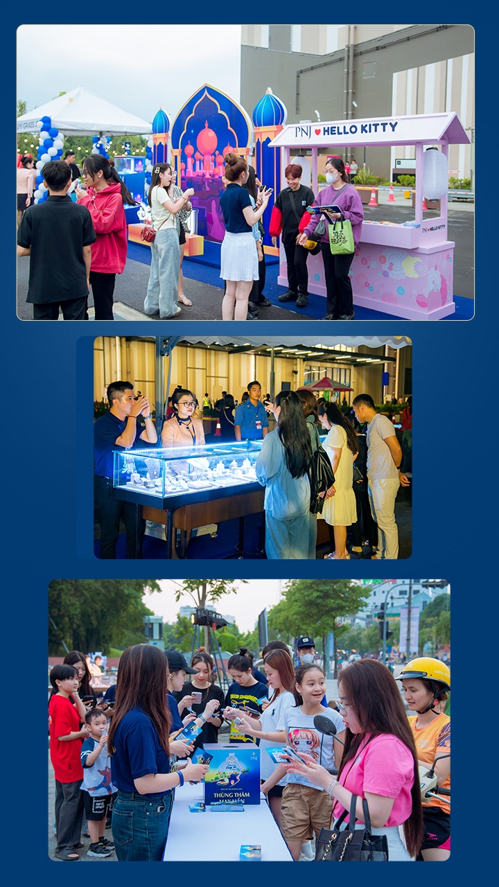 Những hoạt động mang tới trải nghiệm mới lạ như trò chơi Digital Golf - thử thách chơi golf thông qua màn hình lớn, mang lại cảm giác chân thật như ở sân; khu vực triển lãm trang sức PNJ x Hello Kitty, Disney | PNJ dành cho tín đồ yêu thích nhân vật Hello Kitty hay thế giới kỳ ảo của Disney. PNJ tạo ra một không gian thú vị, thu hút người dân tới tham gia sự kiện.