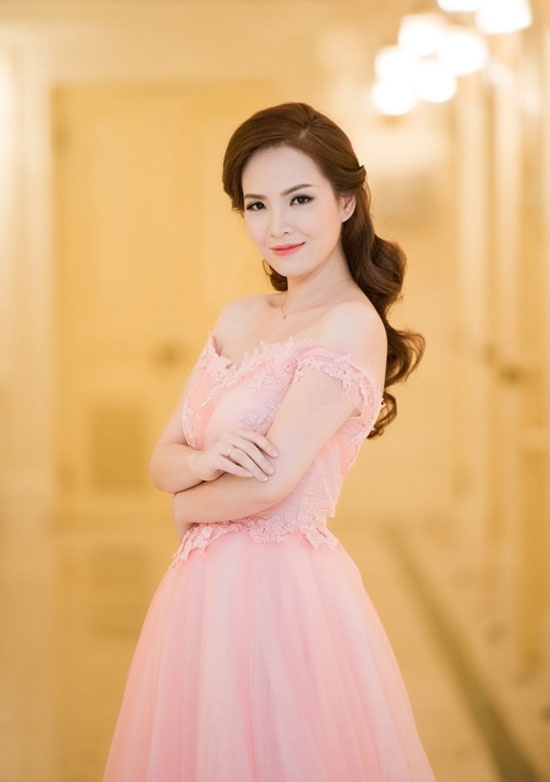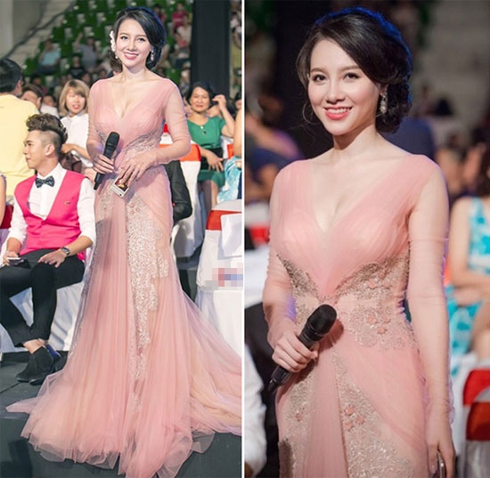 MC Minh Hà xinh đẹp như công chúa nhờ đầm hồng khoét sâu ngực, ôm sát eo. |