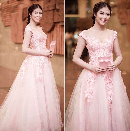 Bộ đầm hồng này giúp cho bà mẹ hai con Đan Lê trẻ hóa chỉ như gái đôi mươi. |