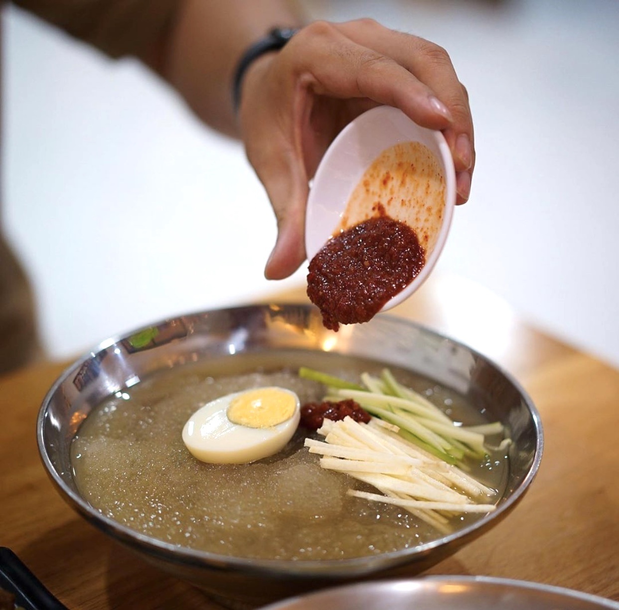 Nếu là người ưa thích ẩm thực Hàn Quốc, bạn không thể bỏ qua mì lạnh. Món ăn nổi bật với sợi mì dai dai, ngấm nước dùng chuẩn vị. Các thành phần ăn kèm như dưa chuột, trứng luộc, rong biển, củ cải muối càng tạo vị ngon.