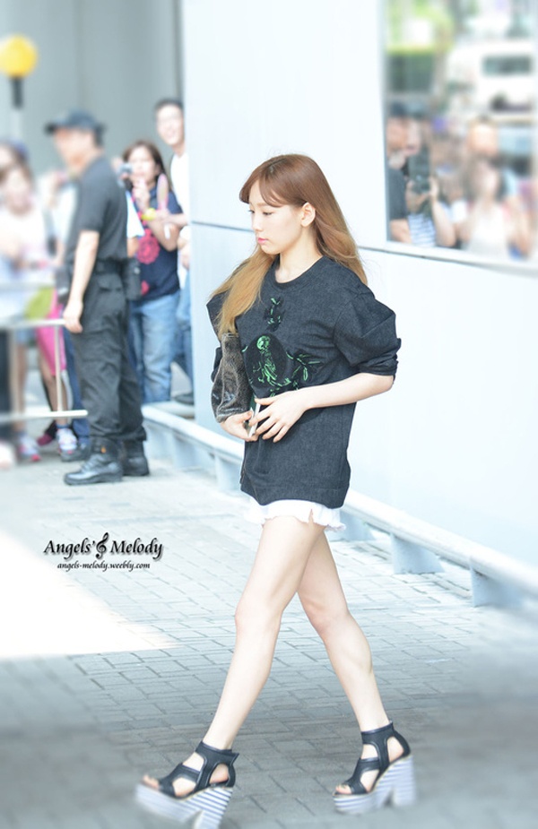 | Trong khi cô bạn cùng nhóm, Taeyeon khoe đôi chân ngắn xinh xắn bằng phong cách nhẹ nhàng và nữ tính. |
