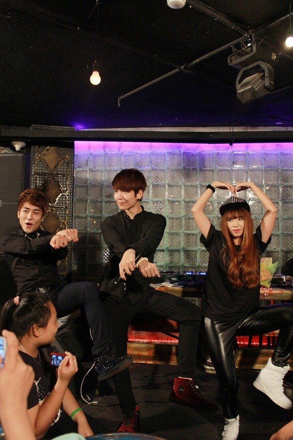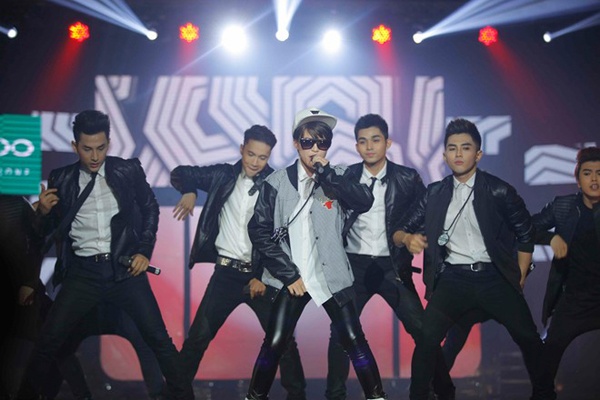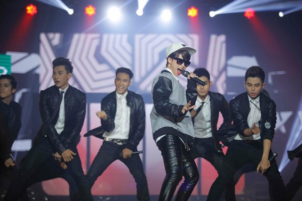 | Trong liveshow của nhóm 365, Khởi My bất ngờ xuất hiện với tư cách khách mời trình diễn ca khúc Eenie Meenie của Justin Bieber. |
