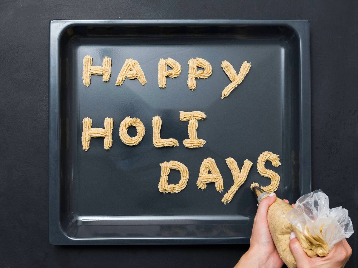 - Sử dụng túi bắt kem nặn thành các hình dạng hoặc chữ cái khác nhau trên khay nướng. Khoảng cách giữa mỗi bánh cookie ít nhất 1 cm.