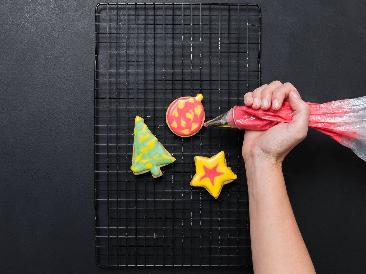 Chỉ với 4 bước đơn giản, bạn dễ dàng tự tay thực hiện những chiếc bánh cookie hình cây thông, ngôi sao, quả châu... đậm sắc màu mùa lễ cuối năm.
