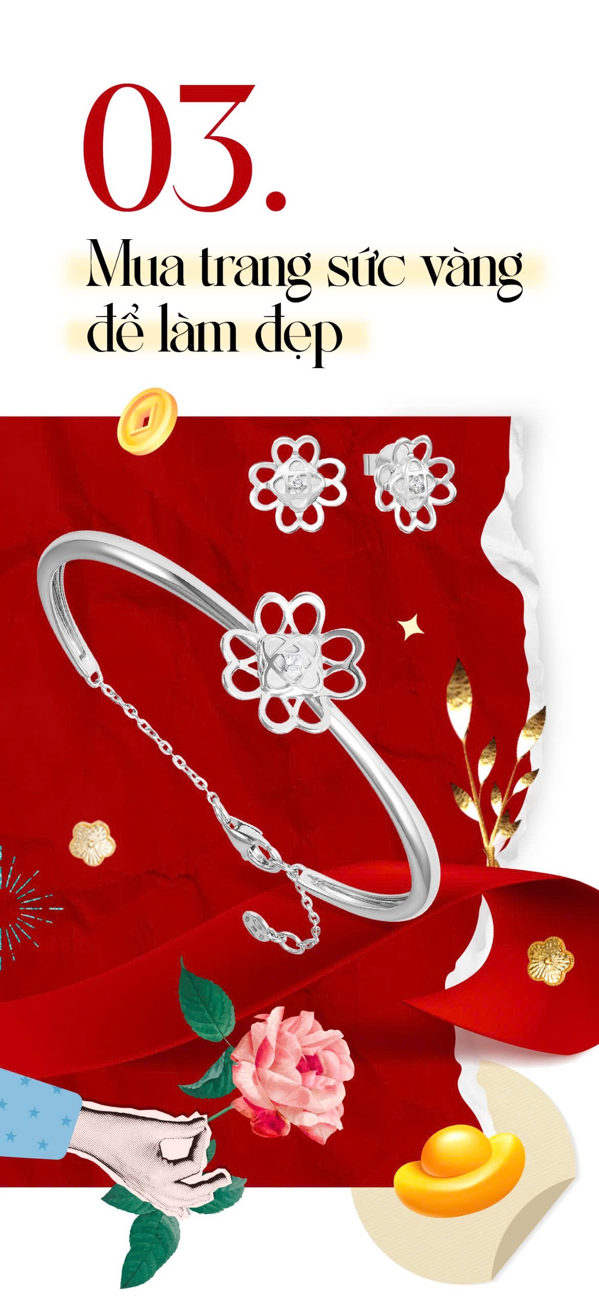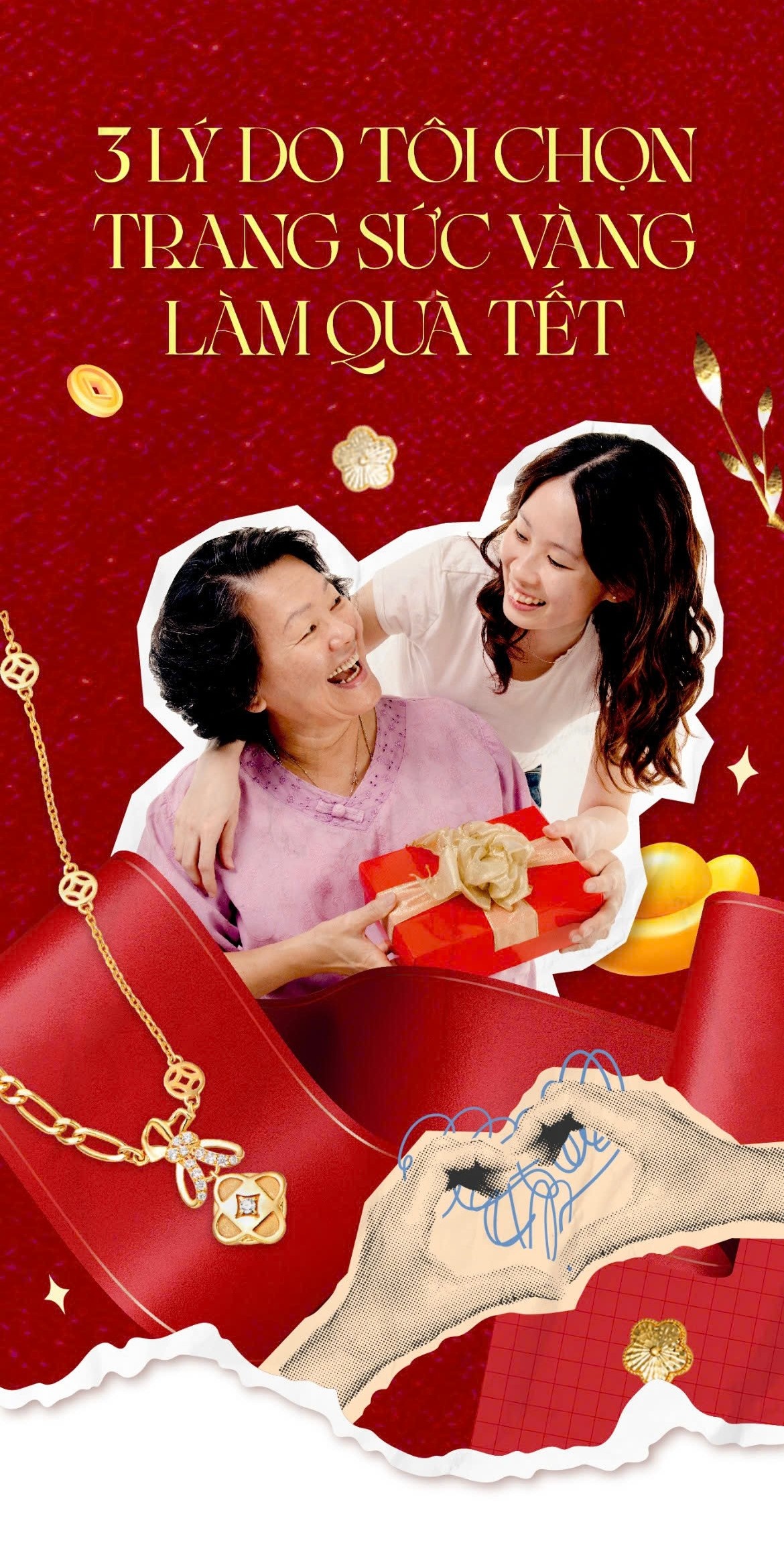 Trang sức vàng bên cạnh làm đẹp, còn là món quà Tết chứa đựng sự quan tâm sâu sắc. Khi đeo lên mình một món trang sức đẹp và ý nghĩa, bản thân tôi và những người thân yêu đều cảm nhận được niềm vui.