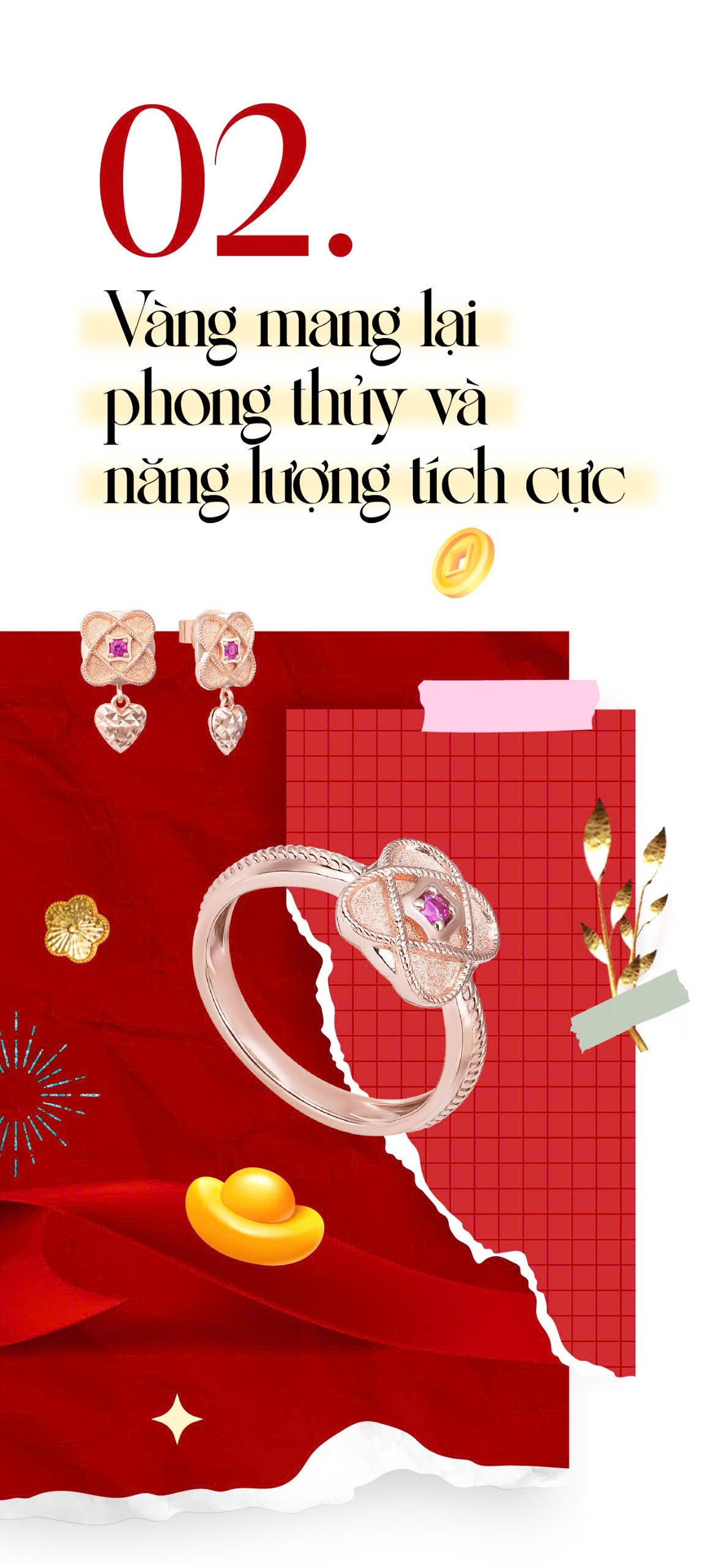 Bên cạnh giá trị vật chất và thẩm mỹ, trang sức vàng còn là biểu tượng của phong thủy, mang lại năng lượng tích cực và những lời chúc phúc đầu năm. Với ông bà và ba mẹ, những món trang sức mang biểu tượng cát tường chính là cách tôi gửi gắm lời cầu chúc sức khỏe, bình an và sung túc.