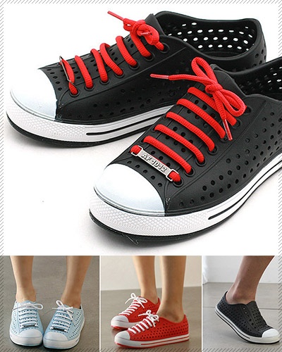 Êm ái, nhẹ nhàng là những cảm nhận đầu tiên về các mẫu giày dép chất liệu nhựa và silicon này. Không chỉ có thể, chúng hoàn toàn có thể chống chọi với những cơn mưa rào mà không lo lắng bị hư hỏng hay ướt sũng nước như các chất liệu khác. Độ xì tin và đáng yêu cũng không kém cạnh, khi các thương hiệu thời trang giày dép liên tiếp cho ra đời hàng loạt mẫu giày dép nhựa với đủ các màu sắc thiết kế trẻ trung, vô cùng thích hợp với bạn gái tuổi teen. Bạn hoàn toàn có thể thách thức ngày mưa với “bộ đôi xuồng” này.