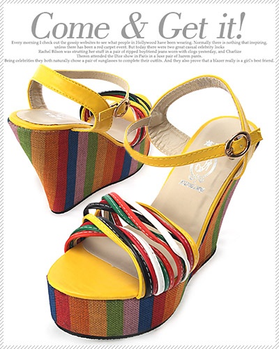 | Giày đế xuồng màu sắc cầu vồng, thích hợp cho ngày năng động. |