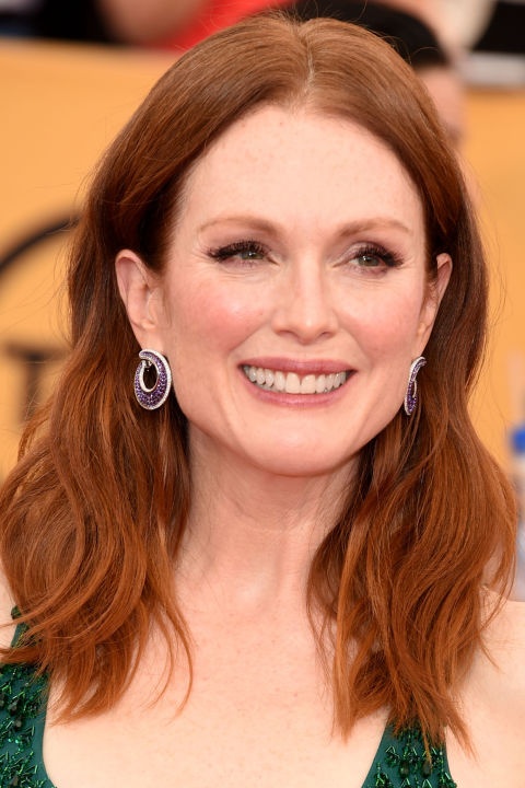 | Bên cạnh đó màu đỏ đồng còn dễ dàng phù hợp với mọi lứa tuổi nên được khá nhiều ngôi sao trung niên lựa chọn, trong đó có nữ diễn viên Julianne Moore. |