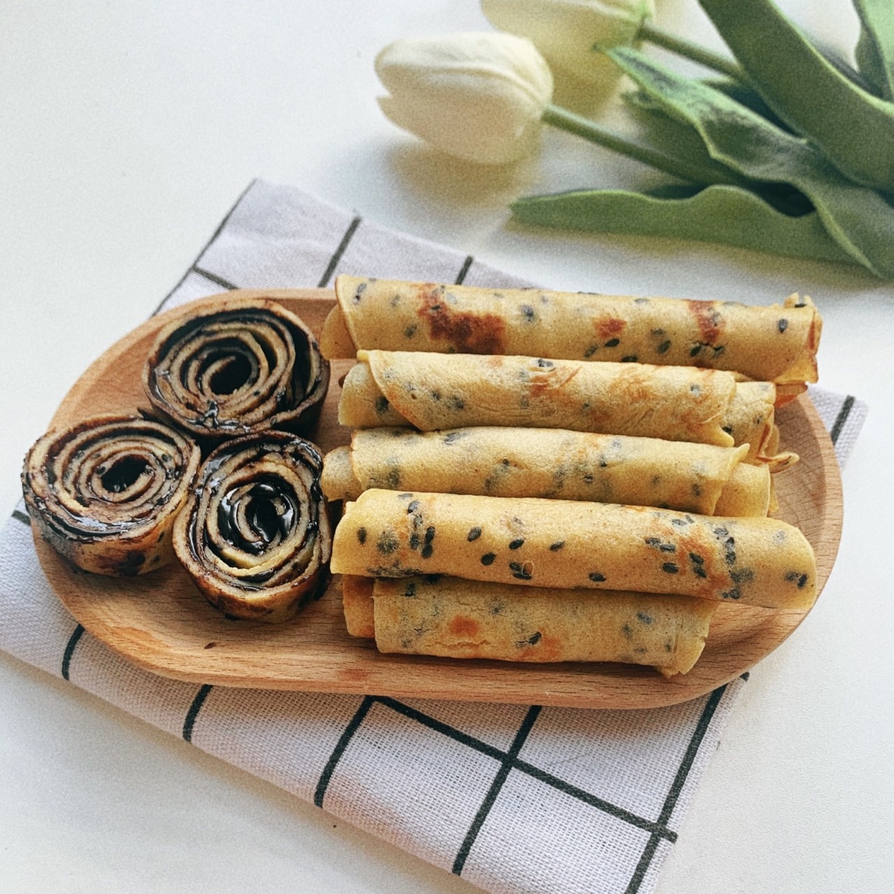 - Nướng tiếp mặt bánh còn lại. Sau khi bánh chín đều cả hai mặt, bạn lấy bánh khỏi chảo, dùng đũa cuốn bánh ngay lúc còn nóng.