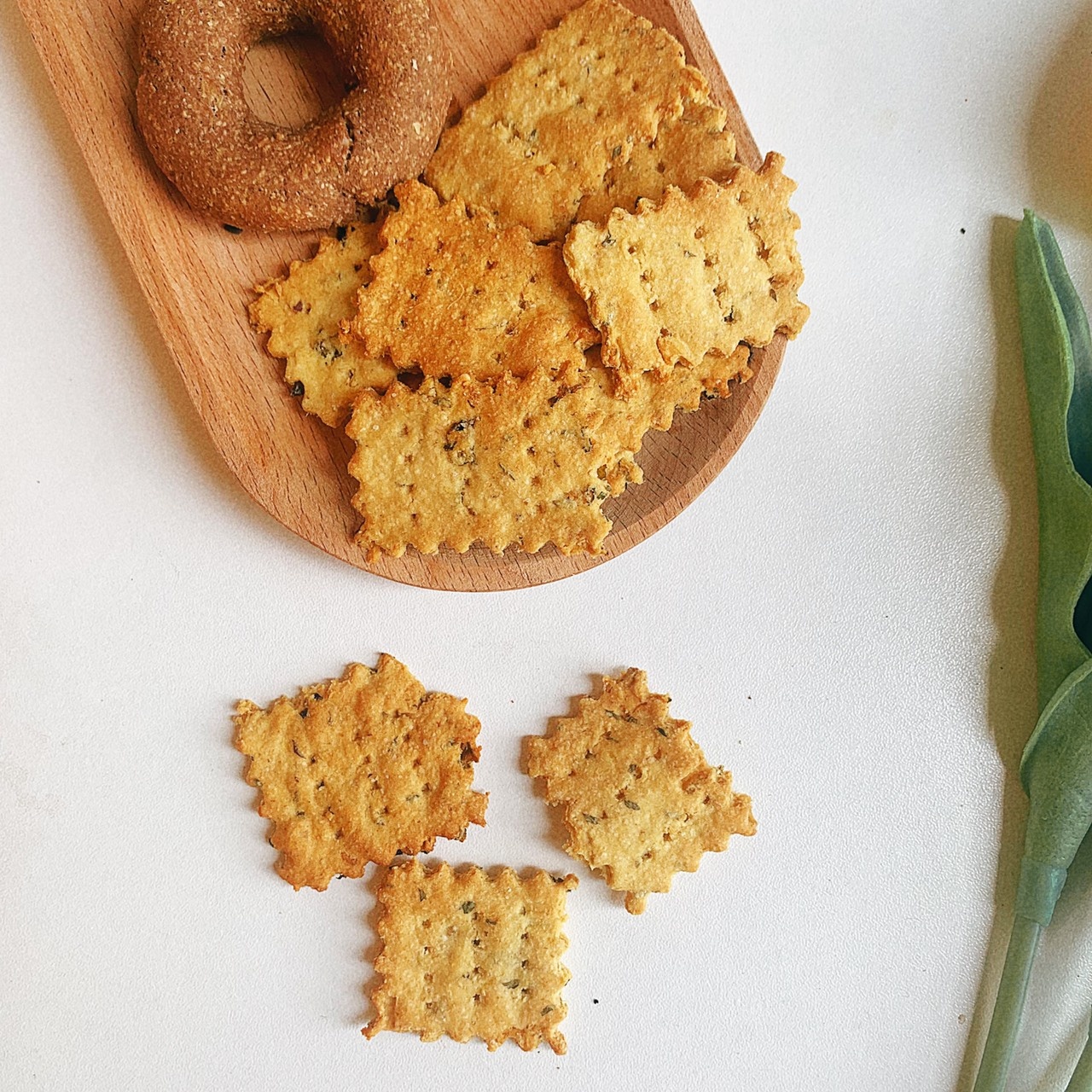 - Trộn tất cả nguyên liệu lại với nhau, sau đó cán mỏng và tạo hình vuông nhỏ vừa ăn. Lưu ý bánh càng mỏng càng dễ giòn.