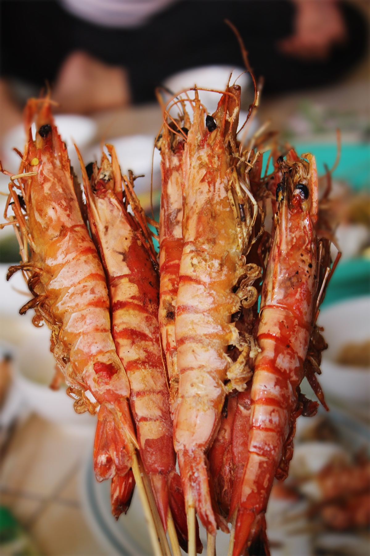 | Bày tôm nướng muối ớt ăn cùng muối tiêu chanh. |