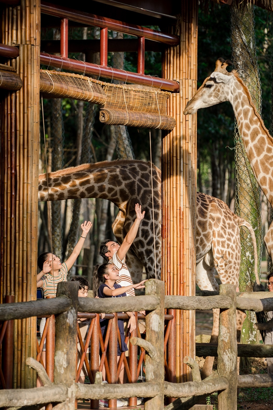 | Tại vườn thú mở, du khách có thể trải nghiệm một số hoạt động tương tác với động vật như cho hươu cao cổ ăn, chụp hình với vẹt Nam Mỹ. Nhân viên vườn thú cho biết mỗi chú vẹt ở đây đều có tên và tính cách riêng mà người chăm sóc phải mất từ một năm để làm quen với chúng. Sự tỉ mỉ và tôn trọng đặc tính tự nhiên tại đây giúp các loài sinh vật dạn dĩ hơn với du khách. |