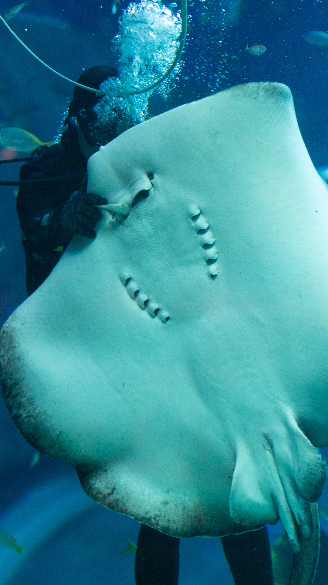 | Sau khi nghỉ ngơi và ăn trưa, nhóm bắt đầu chuyến du lịch tại VinWonders với địa điểm đầu tiên là Cung điện Hải vương - thủy cung hình rùa lớn nhất thế giới. Đây là lần đầu tiên tôi được xem thủy cung tại Việt Nam và hết sức bất ngờ bởi quy mô, số lượng loài cũng như sự chuyên nghiệp của thợ lặn và các nhân viên trong việc giữ tập tính, môi trường sống như trong tự nhiên cho các loài thủy sinh. |