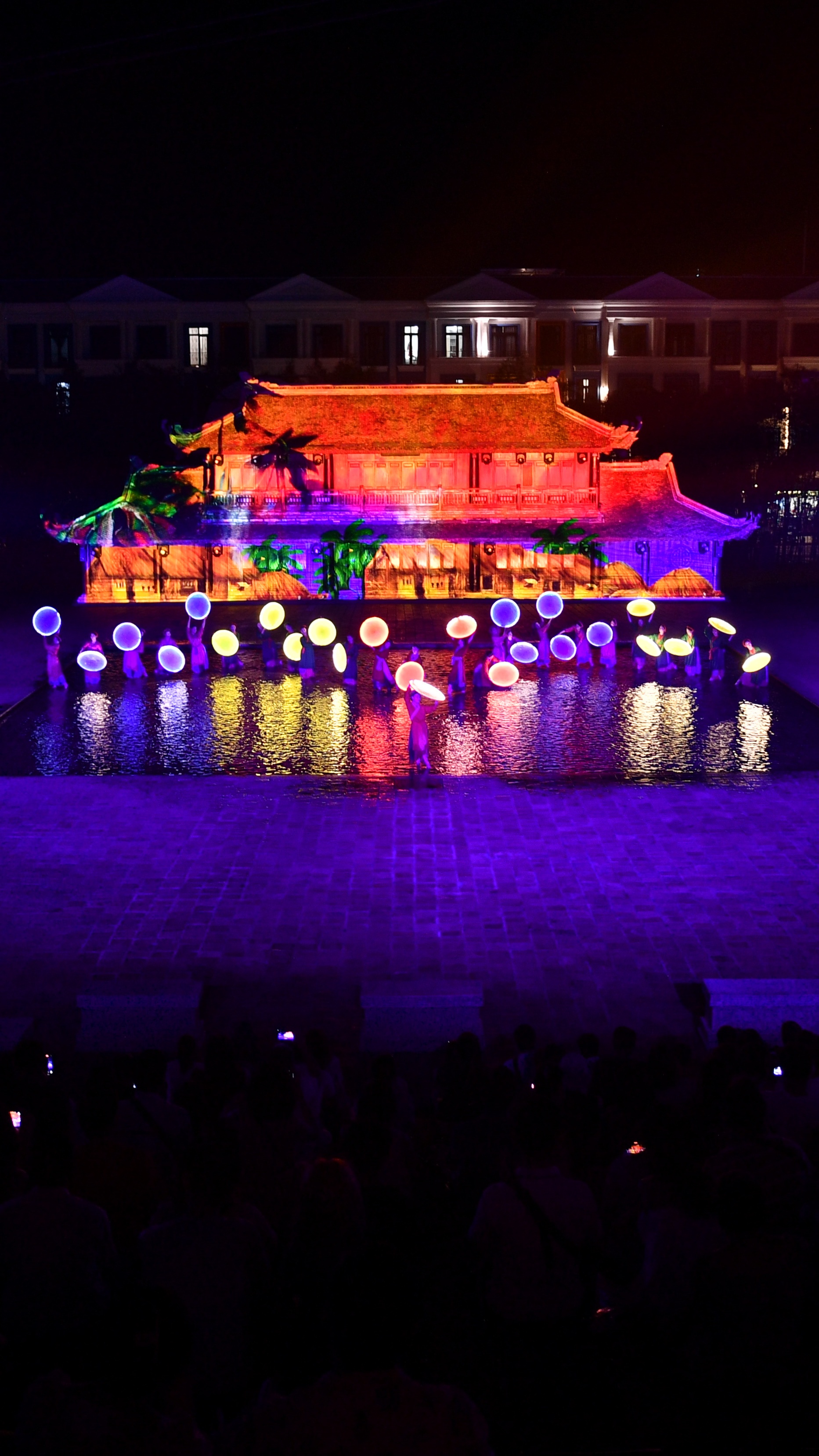 | Tối đầu tiên tại Phú Quốc, tôi tới Grand World để thưởng thức show diễn “Tinh hoa Việt Nam” đã nghe danh từ lâu. Những câu chuyện về văn hóa và lịch sử đất Việt được tái hiện công phu qua màn trình diễn của hơn 200 diễn viên, cùng phục trang, công nghệ ánh sáng, sân khấu nước và hiệu ứng âm thanh hiện đại. “Mãn nhãn” và “ấn tượng” là 2 cảm xúc mạnh mẽ nhất mà tôi đúc kết cho show diễn. |