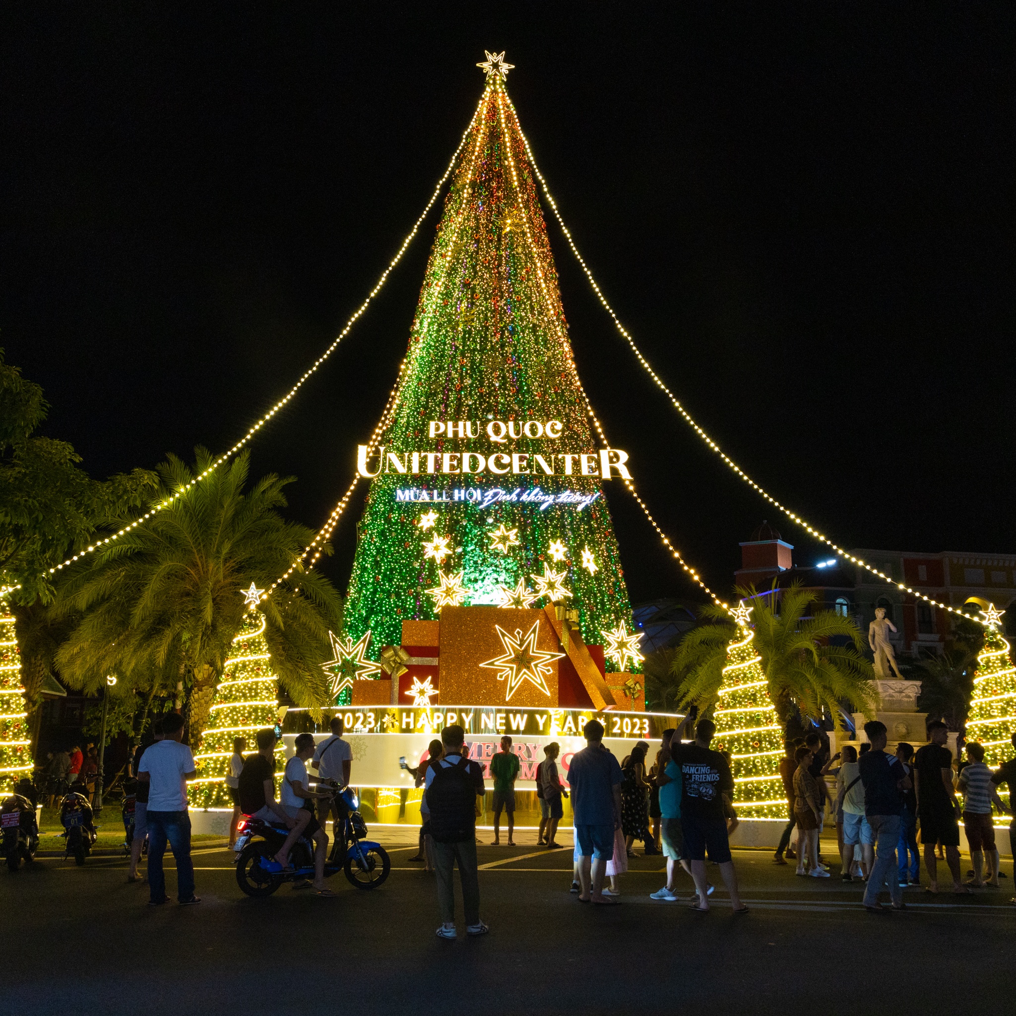 | Phú Quốc bước vào mùa lễ hội với nhiều hoạt động thú vị. Lót dạ và nghỉ ngơi một chút tại khu ẩm thực ChinaTown sầm uất, tôi tranh thủ lưu giữ khoảnh khắc của cây thông khổng lồ cho dịp Giáng sinh sắp đến. Đây cũng là địa điểm được nhiều du khách lựa chọn để check-in tại “thành phố không ngủ” Grand World dịp này. |