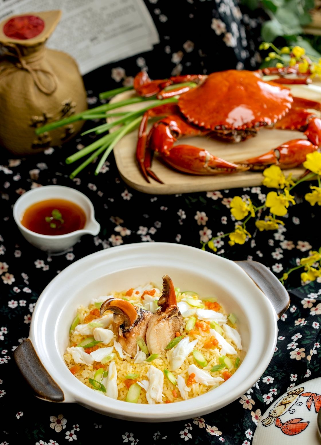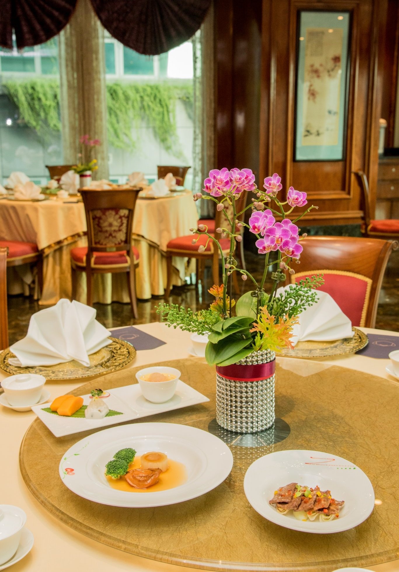 - Thực đơn khá đặc sắc và phong phú. Ngoài các món từ rau củ quả, hải sản hay cơm chiên, miến đen, mì, hủ tiếu, bún gạo xào, bạn có thể thưởng thức ba rọi quay giòn, thịt bò xào với trần bì và nấm hương, sườn heo non rang muối ớt, gà hấp lạp vị kiểu Quảng Đông, gà nấu rượu hoa tiêu trong nồi đất, gà xào hạt điều ớt khô... Nhà hàng còn phục vụ theo mô hình "All You Can Eat", thực khách có cơ hội thưởng thức dimsum tự chọn với hơn 50 món.
