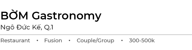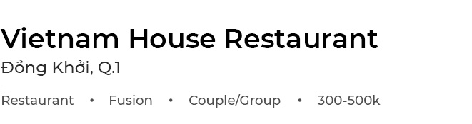 Quận 1 (TP.HCM) là nơi tập trung nhiều nhà hàng cao cấp, phục vụ hương vị phá cách. Vietnam House, 030 Cuisine và BỜM Gastronomy là những cái tên bạn có thể tham khảo.