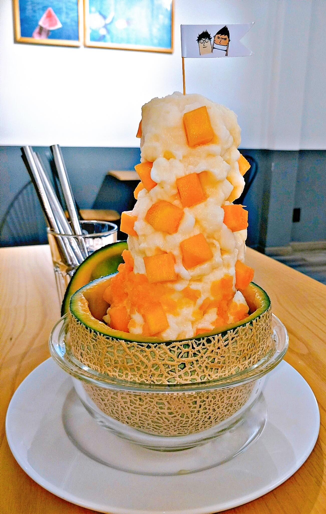 | Dưa lưới, dưa hấu, dừa và thơm là 4 hương vị bạn có thể chọn lựa để thưởng thức trọn vẹn món tráng miệng hấp dẫn này. Những phần bingsu trái cây được thực khách đánh giá có vị ngọt thanh. Ngoài ra, quán còn có bingsu matcha cuốn hút với màu xanh lá và phần kem béo ngậy phủ bên trên. Ảnh: Nguyenythu. |
